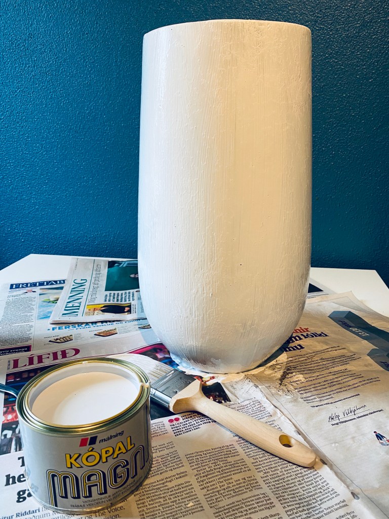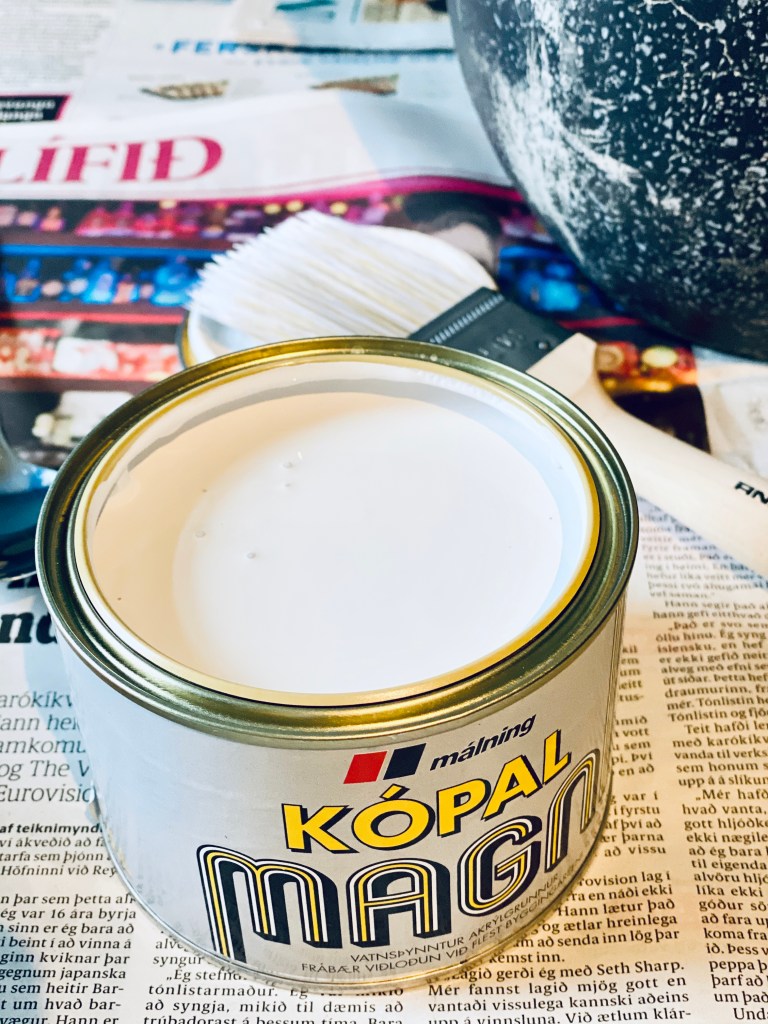 Ég notaði vatnsþynntan akrýlgrunn – Kópal Magna sem ég fékk í Slippfélaginu.